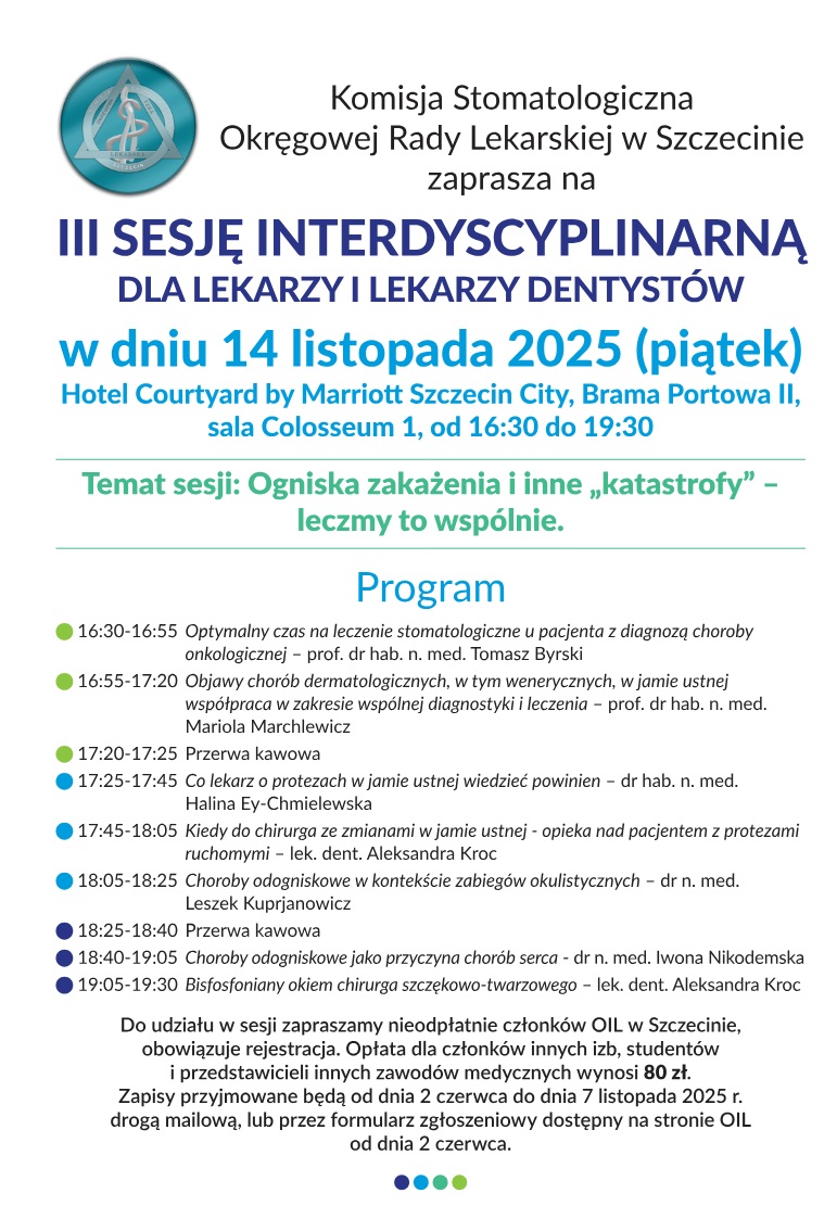 OIL Konferencje, kursy, szkolenia III Sesja Interdyscyplinarna dla lekarzy i lekarzy dentystów